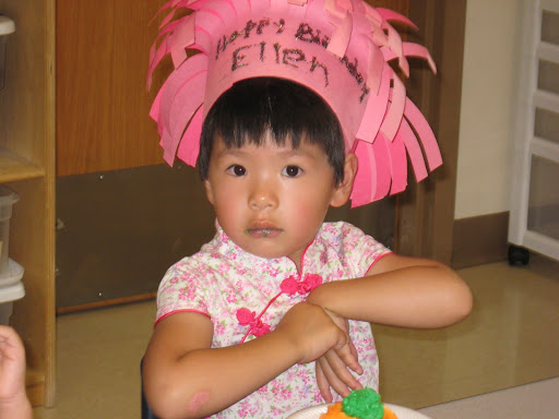 前几天在幼儿园,Ms. Jessica给小朋友们读了Three Little Pigs的故事,回家后Ellen学着说故事,说着wolf knocked the door, little pig, little pig, let me come in,然后小猪回答No, no, I won't let you come in, 说到not by the hair on my chinny chin chin,自己哈哈笑得不已,然后又重头开始说,说到not by the hair on my chinny chin chin,又是一通大笑,如此反复了好几遍,乐得不行。晚上妈妈就挑了Paul Galdone的Three Little Pigs来读,讲到not by the hair on my chinny chin chin,又是笑个不停,还说wolf是bad guy。这2天晚上读书时,Ellen都要先读那本The three little pigs。
